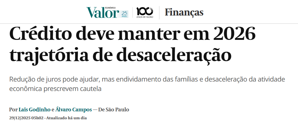 Crédito deve manter em 2026 trajetória de desaceleração – Valor Econômico