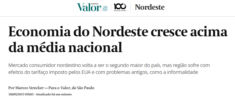 Economia do Nordeste cresce acima da média nacional – Valor Econômico