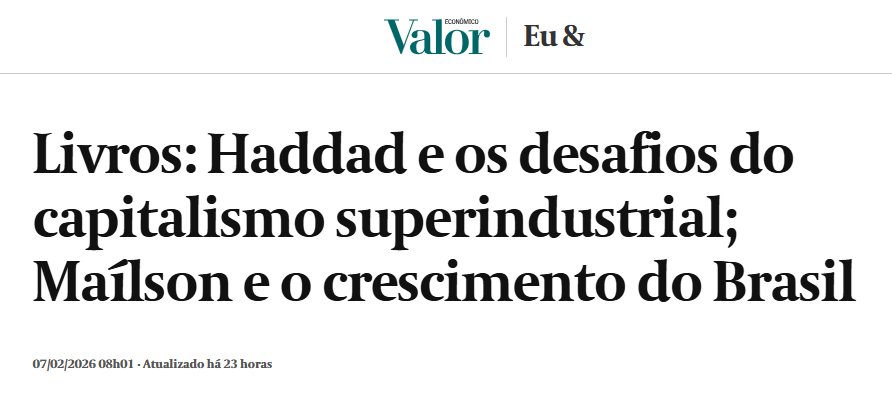 Livros: Haddad e os desafios do capitalismo superindustrial; Maílson e o crescimento do Brasil – Valor Econômico