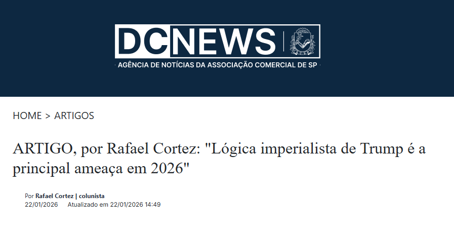 Assim, Trump ameaça quebrar os pilares de uma ordem internacional. Essa confiança está quebrada, independente dos efeitos mais de curto prazo da Groenlândia. A volatilidade dos mercados internacionais a partir do risco geopolítico é a principal ameaça para 2026.