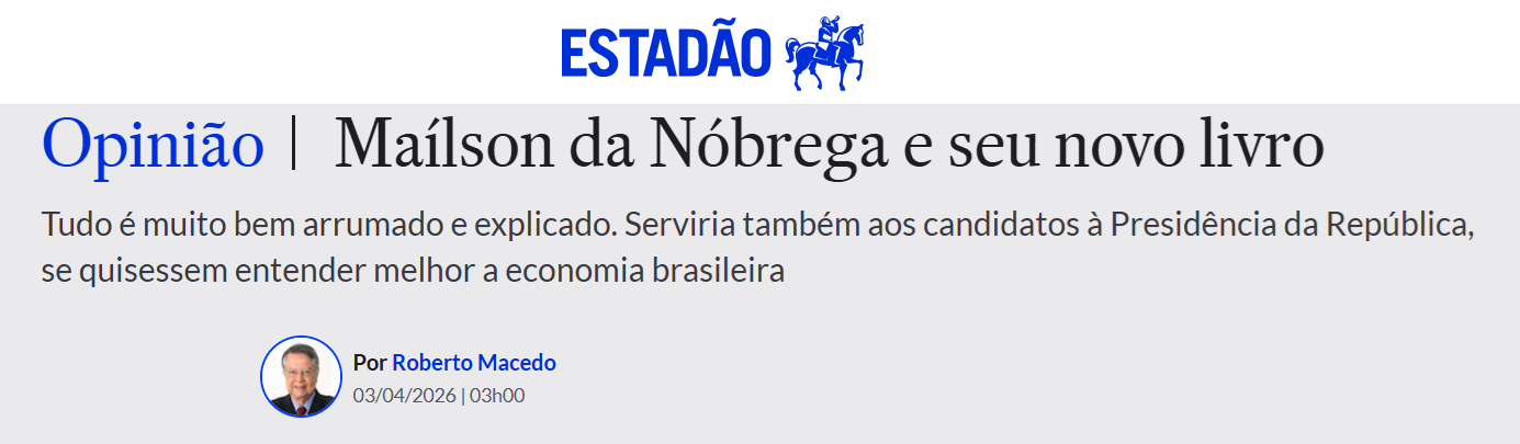 Maílson da Nóbrega e seu novo livro – Estadão