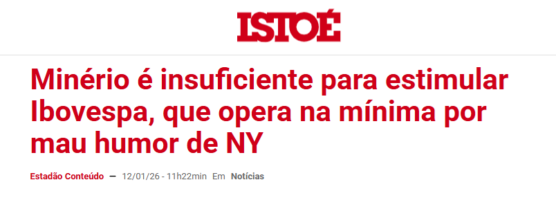 A valorização firme de alguns metais no exterior é insuficiente para estimular o Ibovespa no início da sessão desta segunda-feira, 12. A queda sólida dos índices de ações internacionais nesta manhã e do petróleo impõe cautela. Investidores digerem a intimação da Justiça dos Estados Unidos contra o presidente do Federal Reserve (Fed, o banco central norte-americano), Jerome Powell, em semana de agenda pesada, que terá divulgações como o índice CPI dos EUA e início da temporada de balanços norte-americana do quarto trimestre.