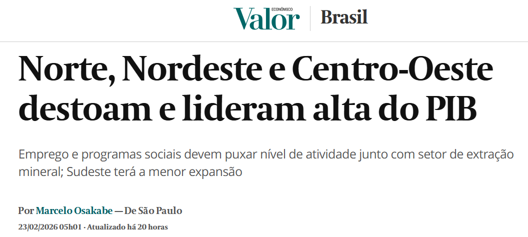 Ajudadas por fatores específicos a cada região, Norte, Nordeste e Centro-Oeste vão liderar o crescimento econômico em 2026. Em um ano em que a atividade caminha para uma desaceleração no país após crescer perto de 2%, o PIB dessas três regiões deverá crescer acima da média esperada.