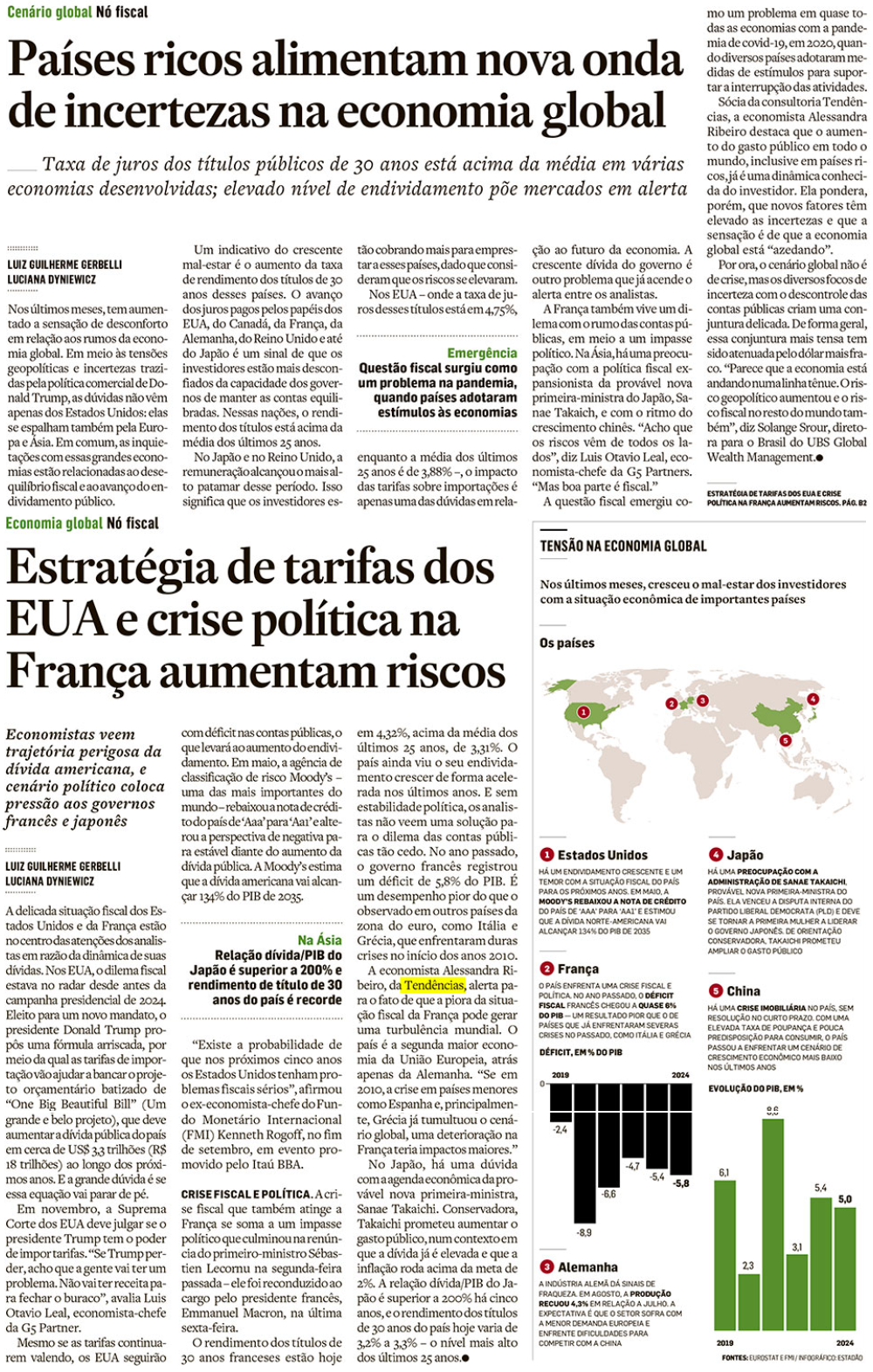 A França também vive um dilema com o rumo das contas públicas, em meio a um impasse político. Na Ásia, há uma preocupação com a política fiscal expansionista da provável nova primeira-ministra do Japão, Sanae Takaich, e com o ritmo do crescimento chinês.