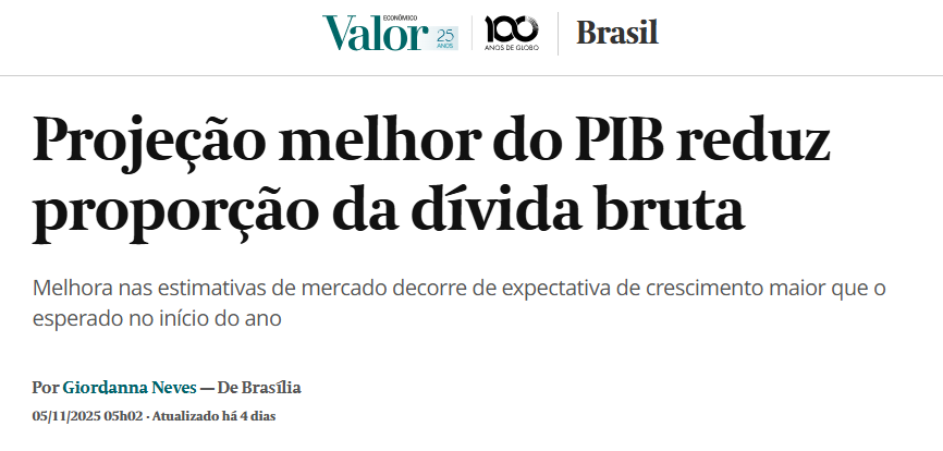 Projeção melhor do PIB reduz proporção da dívida bruta – Valor Econômico
