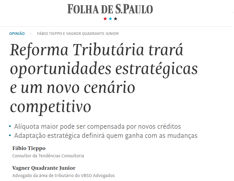 Que imposto é esse: Reforma Tributária trará oportunidades estratégicas e um novo cenário competitivo – Folha de S. Paulo