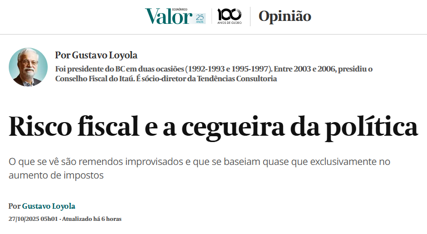 *Gustavo Loyola é Doutor em Economia pela EPGE/FGV, ex-presidente do Banco Central e Sócio-diretor da Tendências Consultoria Integrada, em São Paulo.