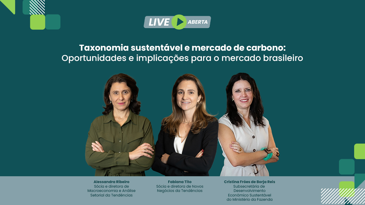 Contamos com a participação especial de Cristina Fróes de Borja Reis, Subsecretária de Desenvolvimento Econômico Sustentável do Ministério da Fazenda, e mediação de Alessandra Ribeiro, sócia e diretora de Macroeconomia e Análise Setorial da Tendências, e Fabiana Tito, sócia e diretora de Novos Negócios da Tendências.