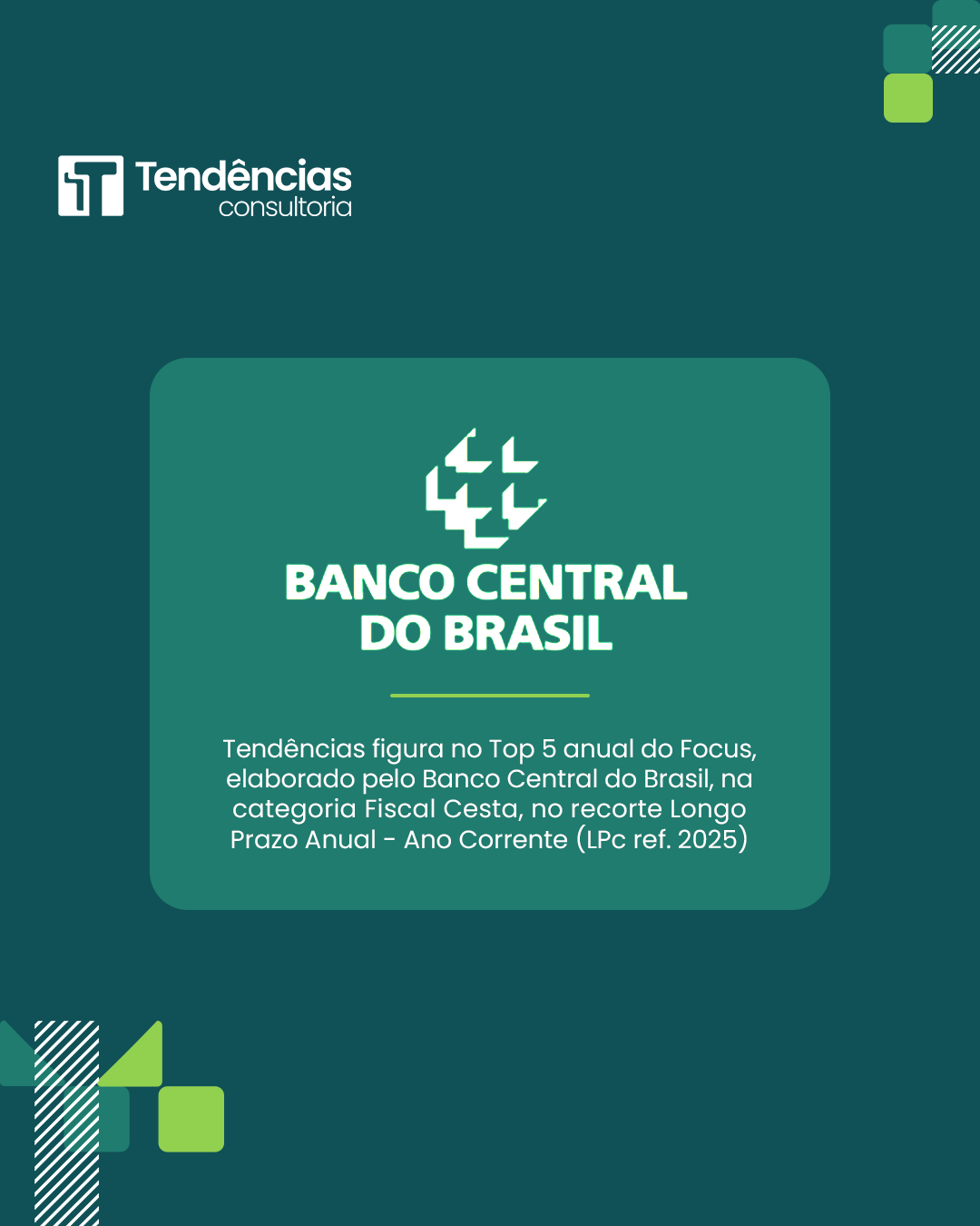 A presença da Tendências Consultoria no Top 5 do ranking anual do Focus 2025, na categoria Fiscal Cesta – Longo Prazo, reforça sua posição como uma das principais referências em análise econômica no Brasil.