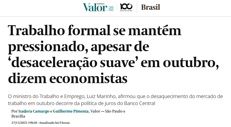 Trabalho formal se mantém pressionado, apesar de ‘desaceleração suave’ em outubro, dizem economistas – Valor Econômico